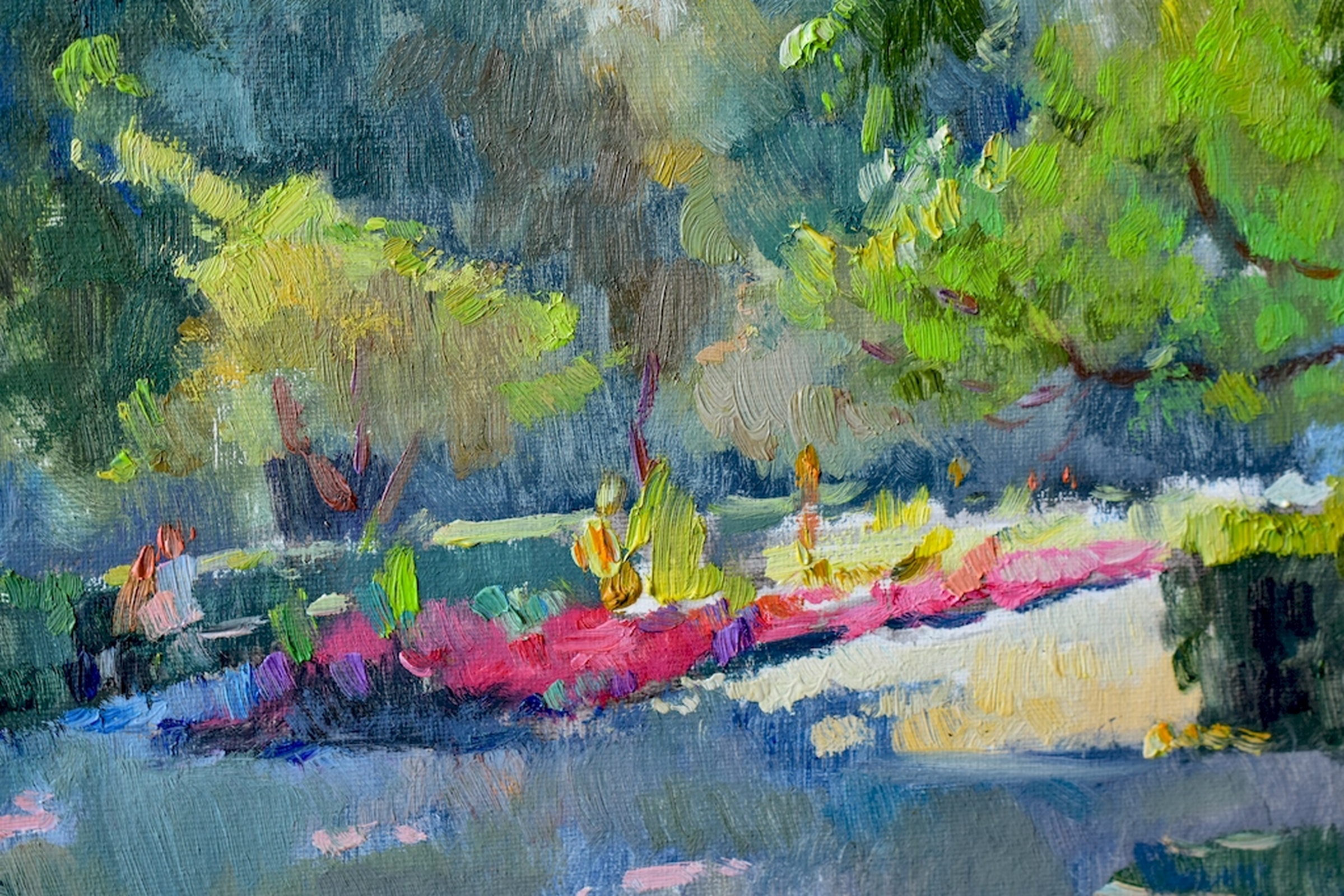 MENTAL THERAPY: Professionally executed, with bright colours and fine brushwork, this handmade oil painting is a powerful source of energy. It inspires and calms at the same time, creating a peaceful atmosphere of cosiness, peace and comfort.