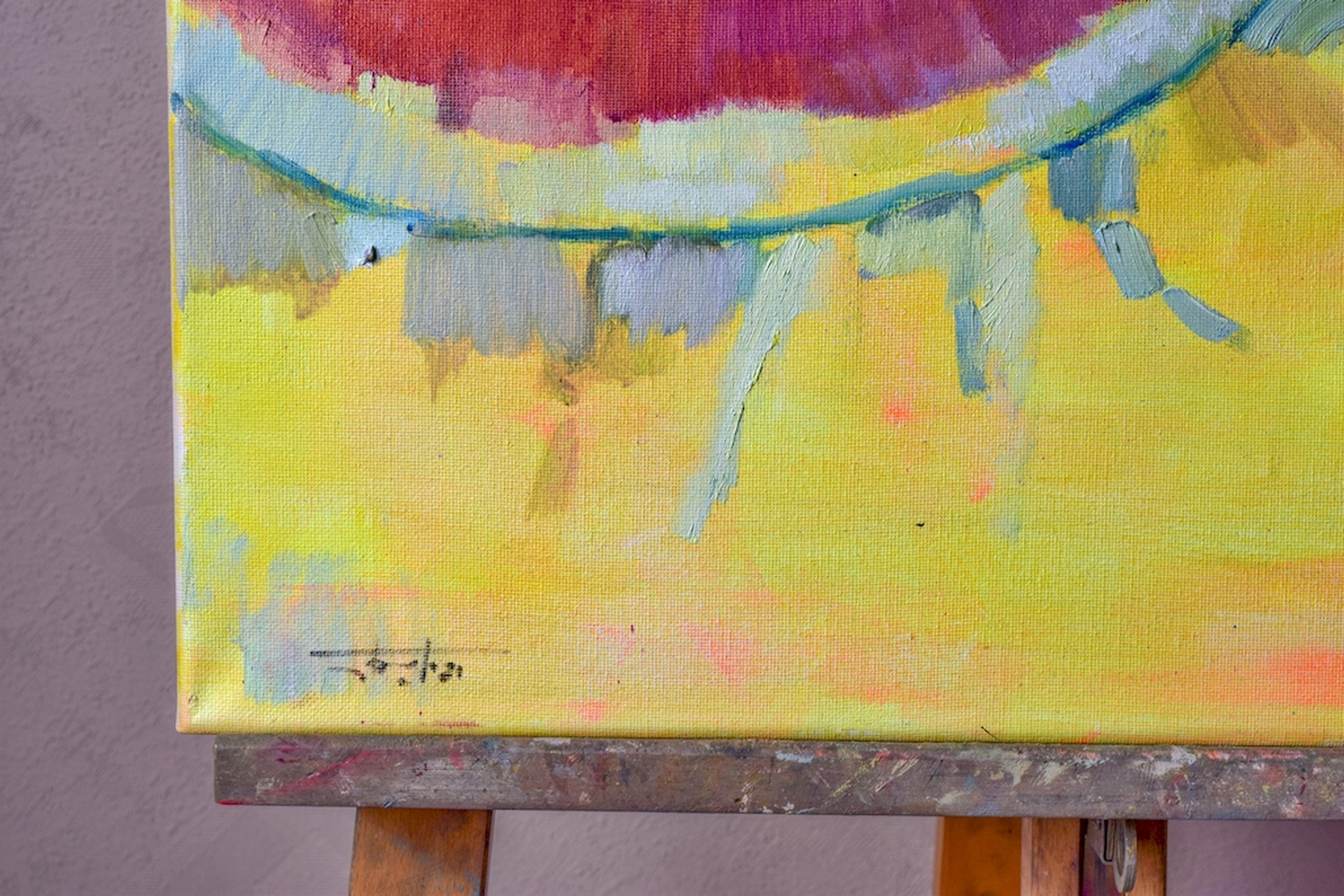 READY TO HANG: This artwork was painted on canvas stretched over a sturdy wooden frame, with a hanging wire already installed on the back. The item requires no assembly and is ready to be placed on the wall.